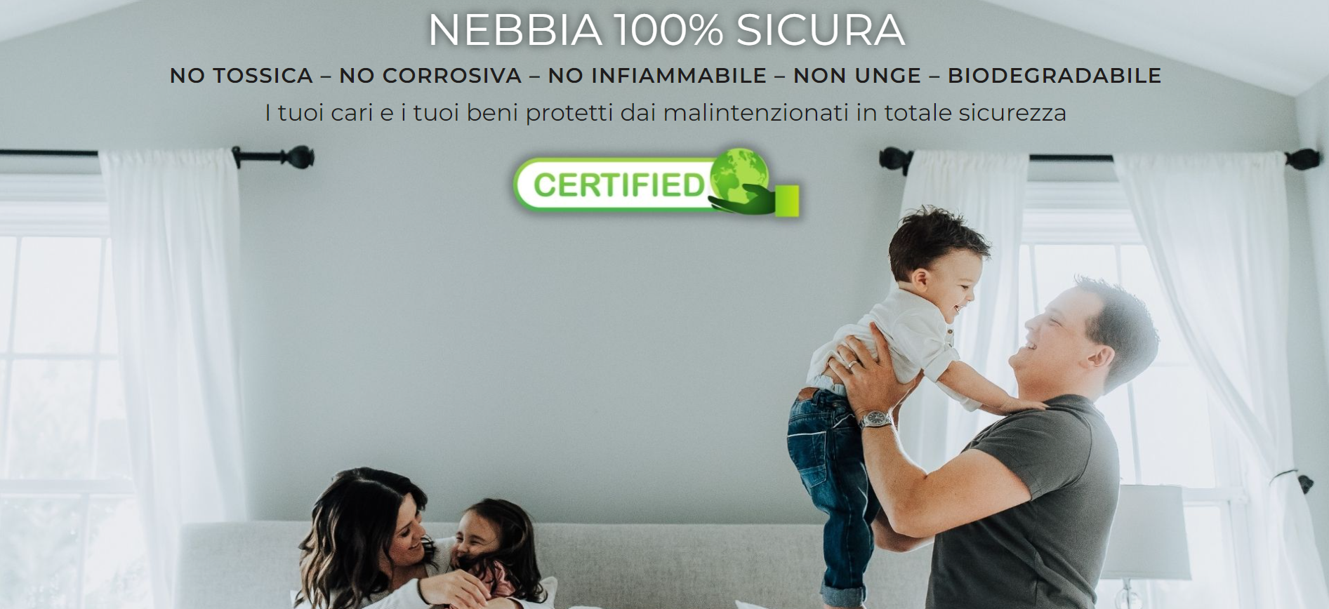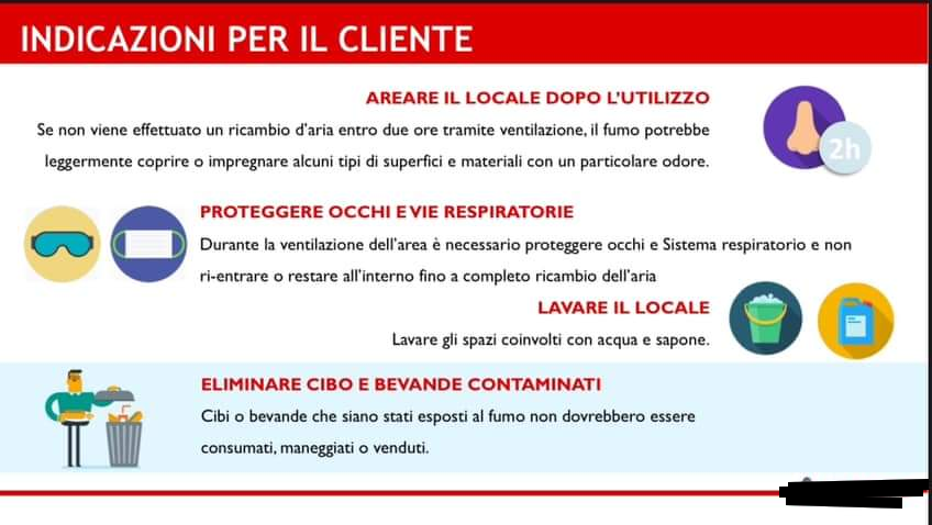 La nebbia del nebbiogeno è generata da un liquido alimentare atossico e certificato, di conseguenza anche la nebbia è certificata atossica e può essere utilizzata in qualunque tipo di ambiente, anche a contatto con i cibi, senza lasciare alcun residuo.
